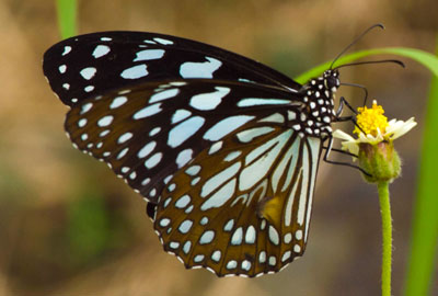 The insects form an integral part of this complex ecosystem. About 74 different species of Butterflies are found in Tadoba Andhari including Monarch, Pansies, Swordtails and Mormons. Other insects include Dragonflies, Moths, Stick Insects, Praying Mantis, Eggfly and Jewel Beetles alongside many species of spiders like Giant Wood Spider, Wolf Spider, Signature Spider, Red Wood Spider etc.